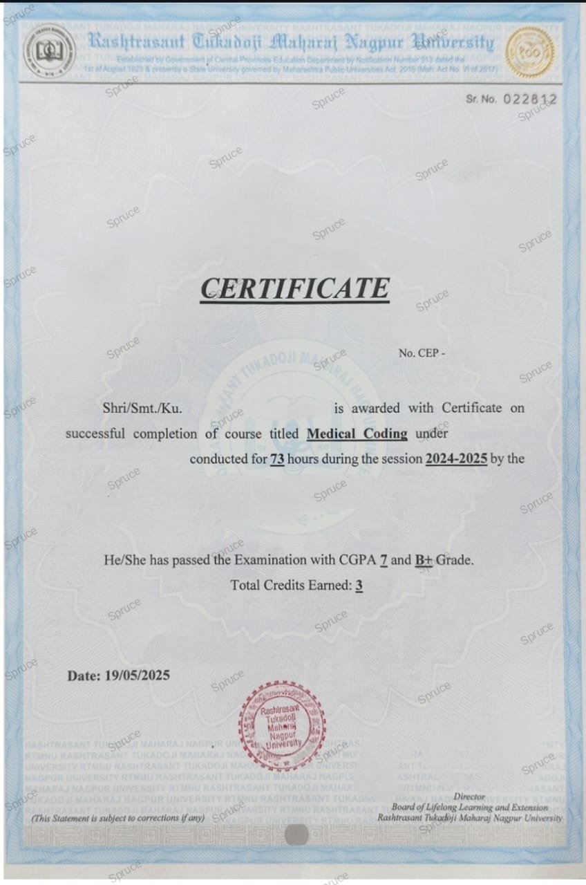 EXCELLENT Based on 265 reviews Posted on Kalyani Dange10 November 2025Trustindex verifies that the original source of the review is Google. Good quality notes and very interactive sessions🙌Posted on Vaishnavi Gupta10 November 2025Trustindex verifies that the original source of the review is Google. Good institute for medical coding. Notes and practice questions are very useful.👍🏻Posted on Aishwarya Natkar10 November 2025Trustindex verifies that the original source of the review is Google. I have done in advance medical coding class from spurce lifeskills nagpur . I had good experience of learning teaching staff is great.Posted on Akansha Giri16 October 2025Trustindex verifies that the original source of the review is Google. I don't get as such benifits doing this course I thought they need to improve their teaching techniques and recording sessions and provide some job opportunities somereferences......Posted on payal chatap (Payal)26 September 2025Trustindex verifies that the original source of the review is Google. I have completed my medical coding foundation course in spruce. Such a helpful faculty.Posted on Sakshi Laxane26 September 2025Trustindex verifies that the original source of the review is Google. I have completed my medical coding course of 3 months from spruce lifeskills.. All the education is very good and staff is also very supportive and they always guide us about each and everythingPosted on Mayuri Kale18 September 2025Trustindex verifies that the original source of the review is Google. I have done my PG diploma in medical coding and clinical research in Spruce lifeskills institute.This is very well known institute for guidance and they give coaching for clinical research and medical coding but they have lack of connection with companies and clinical research sites. There reference in any field of job is not supportive for me, that's why I suggest or review to institute to first strong your connection and then give assurity to students or deligates of hundred percentage placement. At the time of admission these people tell me that you will get RTMNU affiliated certificate but they not give certificate and conduct exam. Faculties is good specially Monali mam however management is not supportive. Thank you giving for the guidance.Posted on Sonam Bagde11 September 2025Trustindex verifies that the original source of the review is Google. I have recently completed my diploma in medical coding. I have great experience with spruce.Posted on Sakshi Dhomne3 September 2025Trustindex verifies that the original source of the review is Google. I have done my advanced diploma in medical coding from spruce institute.I love My experience at spruce institute.The faculties are very knowledgeable and experienced and providing in detail insights into medical coding.I am very thankful for this program and glad to be a part of it.Posted on vaibhav meshram1 August 2025Trustindex verifies that the original source of the review is Google. It's been a great learning with Spruce Lifeskills institute. After learning with them I have familiar with all the concepts regarding Clinical Research, Pharmacovigilance.. Experienced faculty which are currently working in the industry taught me as well guided. It's been really nice to be connecting with SpruceVerified by TrustindexTrustindex verified badge is the Universal Symbol of Trust. Only the greatest companies can get the verified badge who has a review score above 4.5, based on customer reviews over the past 12 months. Read more